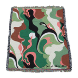 Wrap yourself up in a cozy FULL COLOR Jacquard woven blanket, made with 100% cotton & recycled yarn, measuring 50 x 60 and fringed on all four sides. Machine Wash & Dry.