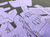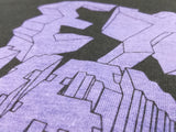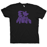 Purple logo on a black Bella Canvas t-shirt. 100% cotton.
